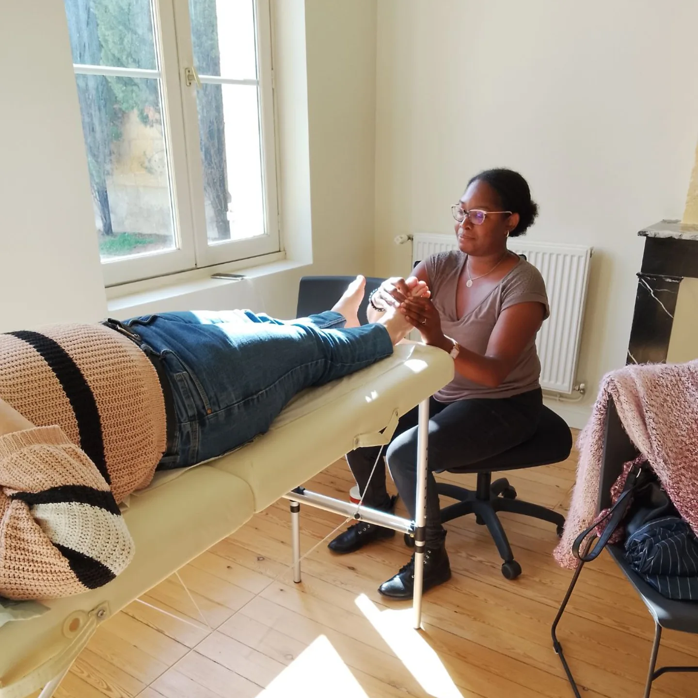 Lors de cette intervention, j’ai proposé quatre mini-séances de 30 minutes, permettant à chaque participante de découvrir les bienfaits de la réflexologie plantaire.